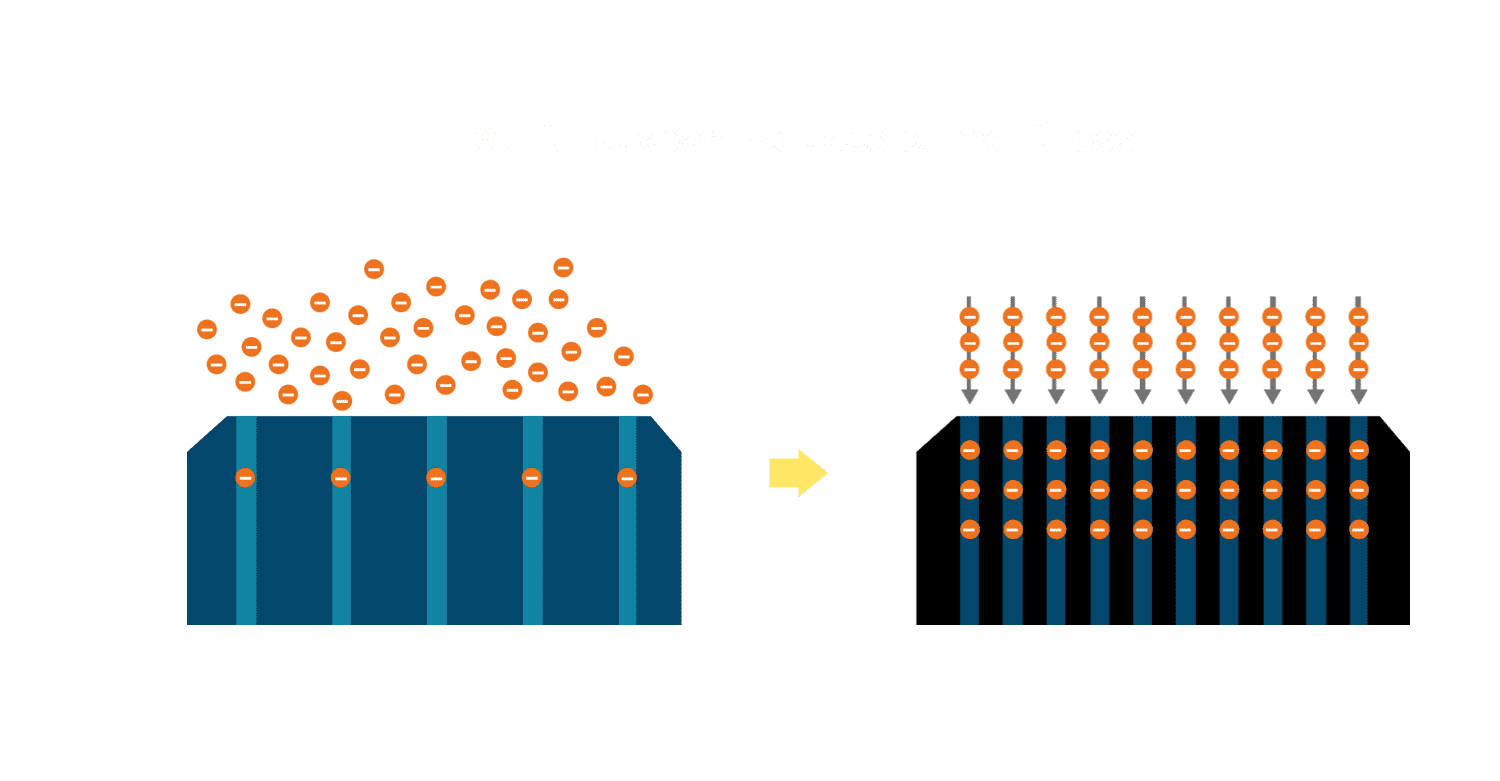- 多条电极栅结构,,可有效降低外力对于电池的影响,,,限制电池隐裂 (Micro-cracks) 范围,,,,防止电流传输路径 (Current distribution) 之损坏进一步扩大。。