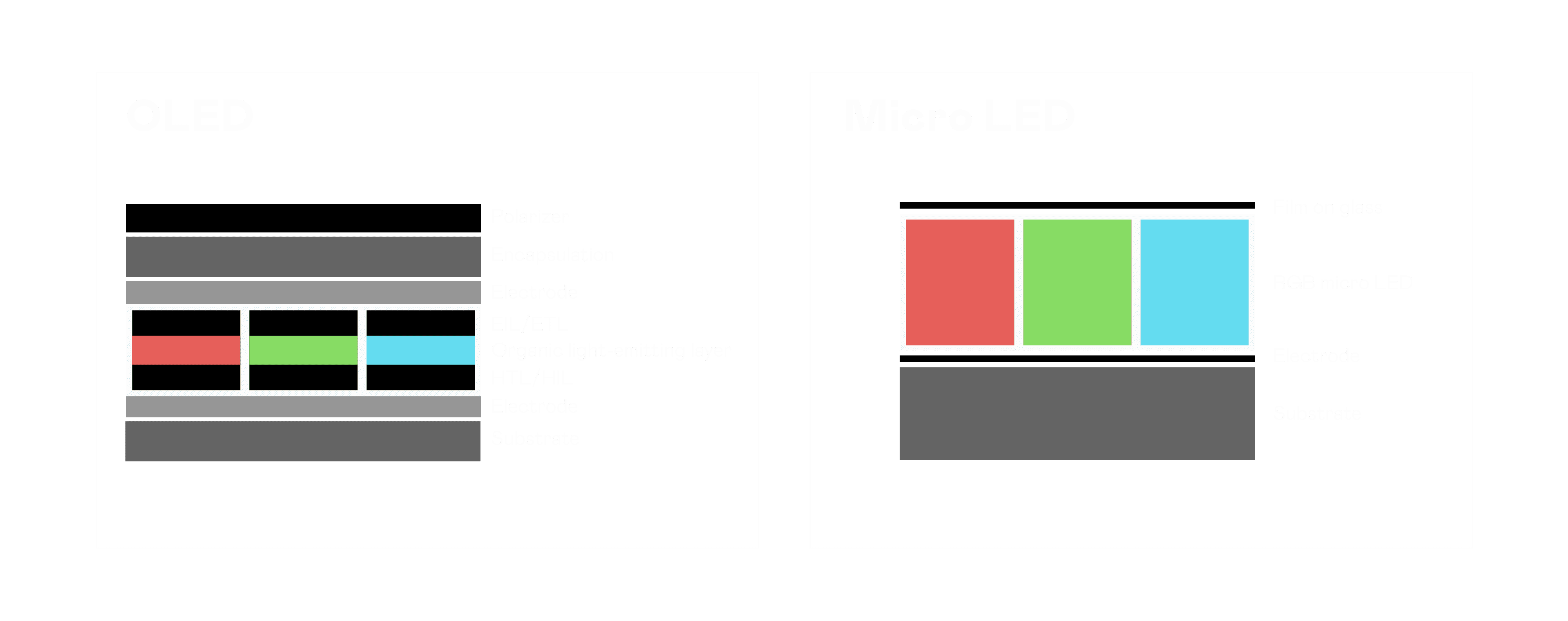 以 LED 做为显示画素,,可让 LED 的发光效率发挥到极致,,,,从而让显示器具备优异的亮度表现,,不论是在户外或室内,,,,均具备出众的显示效果。。。。同时,,,,与使用有机材料的 OLED 相比,,,LED 具备更稳定、、、寿命更长的特性,,,不仅不会有画面烙印问题,,而且更不容易出现故障、、、、坏点。。