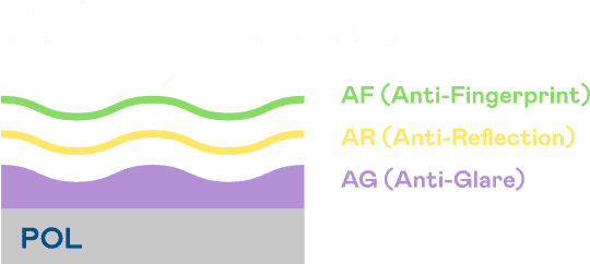 口袋牛店光电发展出独家的表面处理跟多层镀膜技术,,,让外部光线照射到显示器表面时所产生的反射光大幅降低。。。